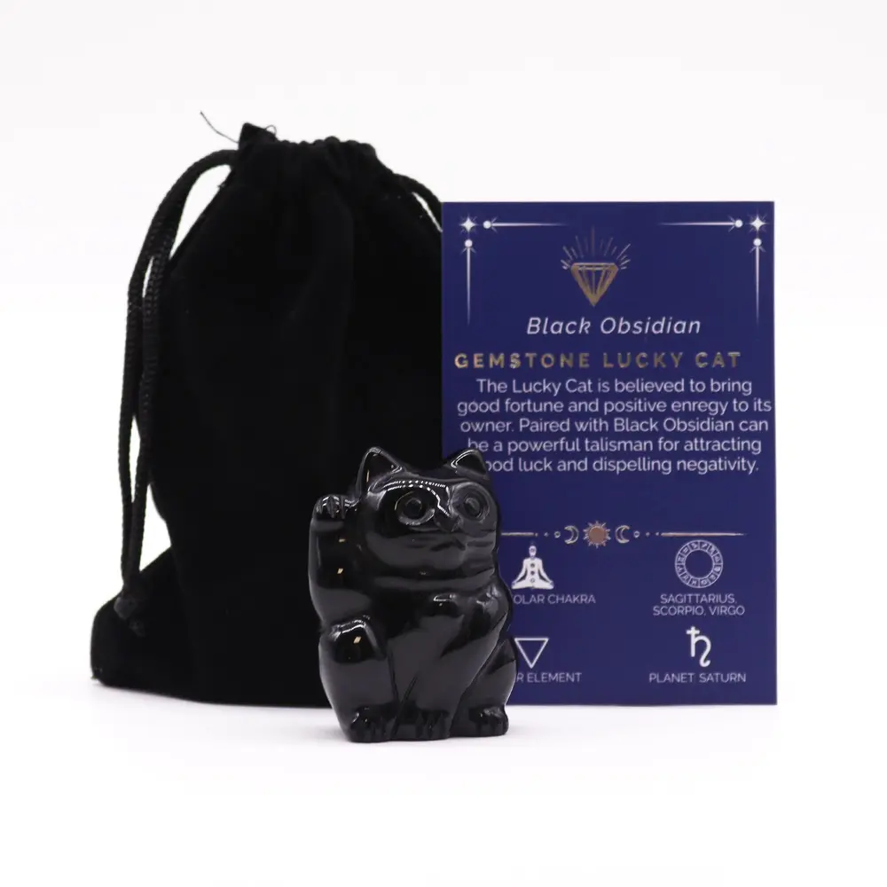 Lucky Cat Gem – Sort Obsidian 50x35x25mm