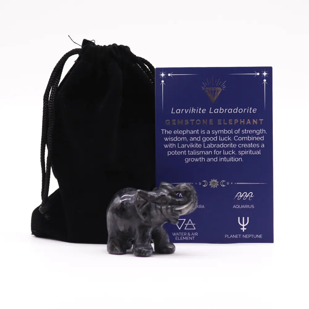 Lucky Elephant Gemstone – Larvikite Labradorite 50x35x25mm