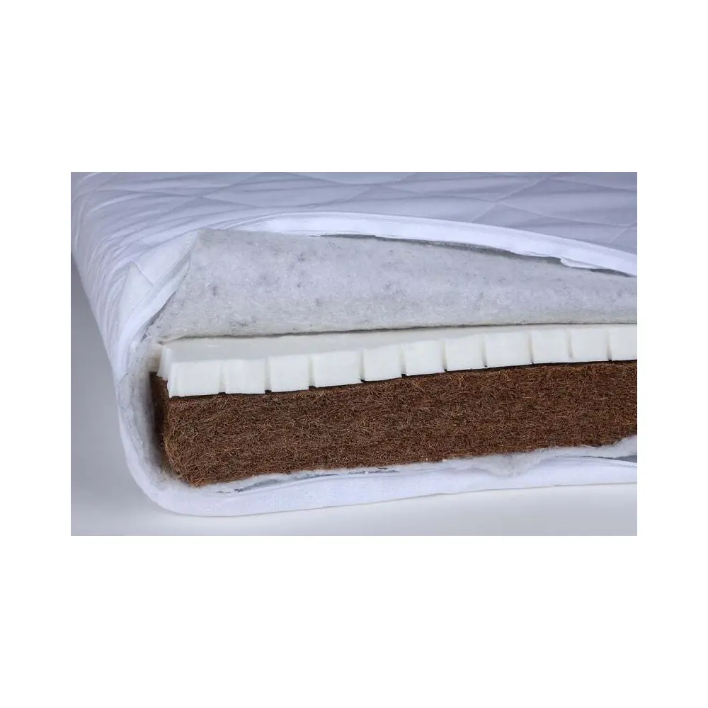 YouniqueLatex madras Størrelse:140 x 70 cm Dette er en tosidet madras (blød & stærk). Inde i madrassen er 7 cm kokosnøddelag på den ene side og 2 cm latex på den anden side. Der bruges ingen lim i produktionen af denne madras. 1. Termoregulering. Latex køler børns krop om sommeren,mens det om vinteren sparer på varmen. 2. Lang levetid. Latex har minimal slitage og deformationsfaktor. 3. Latex er modstandsdygtig over for støvmider og andre skadelige bakterier. 4. Dette materiale er ekstremt elastisk og tilpasser børnekroppens bøjning. Vi anbefaler et barn at sove på et lag kokosnød indtil 1-1,5 år,end at du kan dreje madrassen til en latex (mere blød) side. Betræk af madrassen: 100% bomuld (OEKO TEX certificering). Pleje (af madrasbetrækket): ✔ Kan maskinvaskes ved 30-40°C ✔ Må IKKE bleges ✔ Strygning på medium varme ✔ Hænges tørt ✔ Må ikke renses